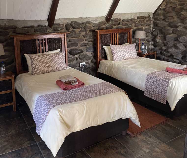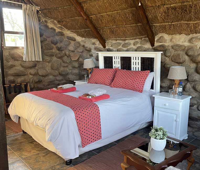 The lodge is self-catering and offers guests 8 genuine safari- style chalets that can accommodate a maximum of 23 guests with a main communal kitchen, lounge, dining area, cosy bar for socializing; this guarantees a personal and private atmosphere. You can also spend the day lounging around the splash pool, or your evenings by the boma under the stars with the sounds of the wild.